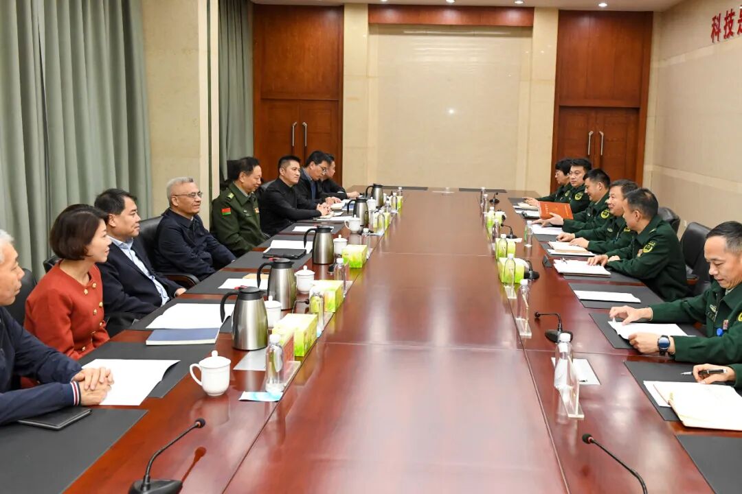 随后,在武警特色医学中心礼堂,观看了专题汇报片。结束后,双方召开座谈会。贾堤指出,长期以来,武警特色医学中心主动支援全区经济社会发展,在圆满完成部队医疗保障任务的同时,积极响应党和国家号召,为群众做了很多好事、实事、暖心事,有力促进了全区高质量发展和社会和谐稳定。当前,全区上下正深入贯彻党的二十届三中全会精神,全面落实习近平总书记视察天津重要讲话精神,聚焦高质量发展这一首要任务和经济建设这一中心工作,全面落实高质量发展“十项行动”和“三新”“三量”等重点任务。希望武警特色医学中心进一步发挥医疗、科研、教学、保健、救援等综合优势,在军地医疗共建上有新亮点、在公共卫生服务水平上有新提升,推进双方医学优势资源与经济社会高质量发展有机结合,更好满足人民对医疗健康服务的新期待,共同谱写新时代双拥共建新篇章。